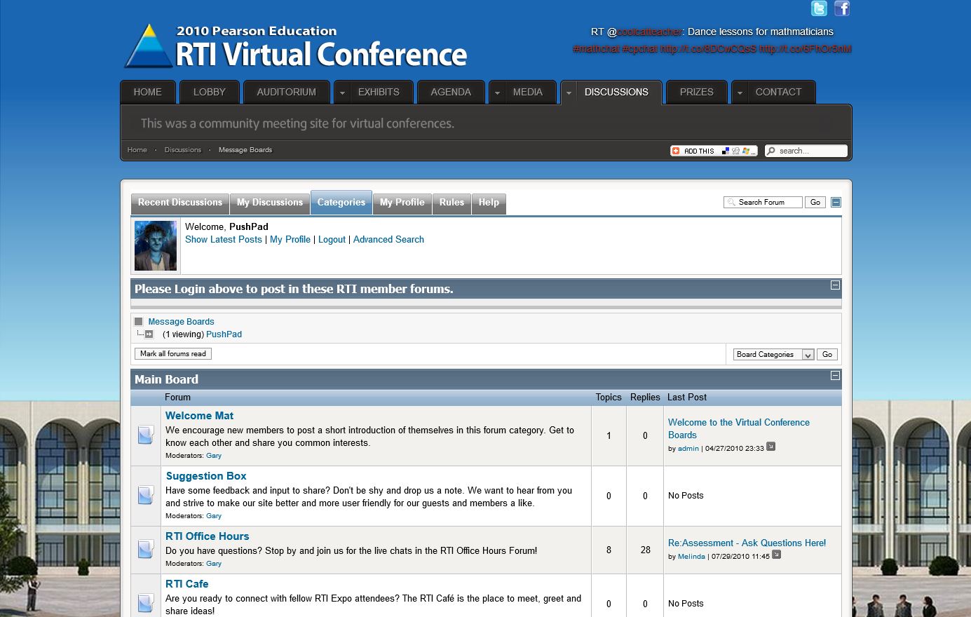 Leave your thoughtsPearson also contacted me about a broken virtual conference site. Essentially, this site posted conference info along with a forum and resource links. After the conference, all the seminar recordings are then posted for reference.